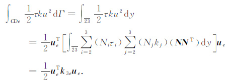 对于(2)式中第三个积分项只对CD边界进行.当单元的23边落在CD边界上时,线积分