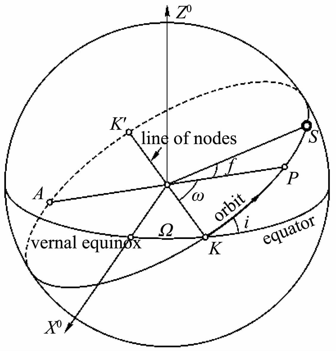 图 1 卫星运行轨道和轨道根数的关系 Fig. 1 Relation of satellite orbits and orbital elements |