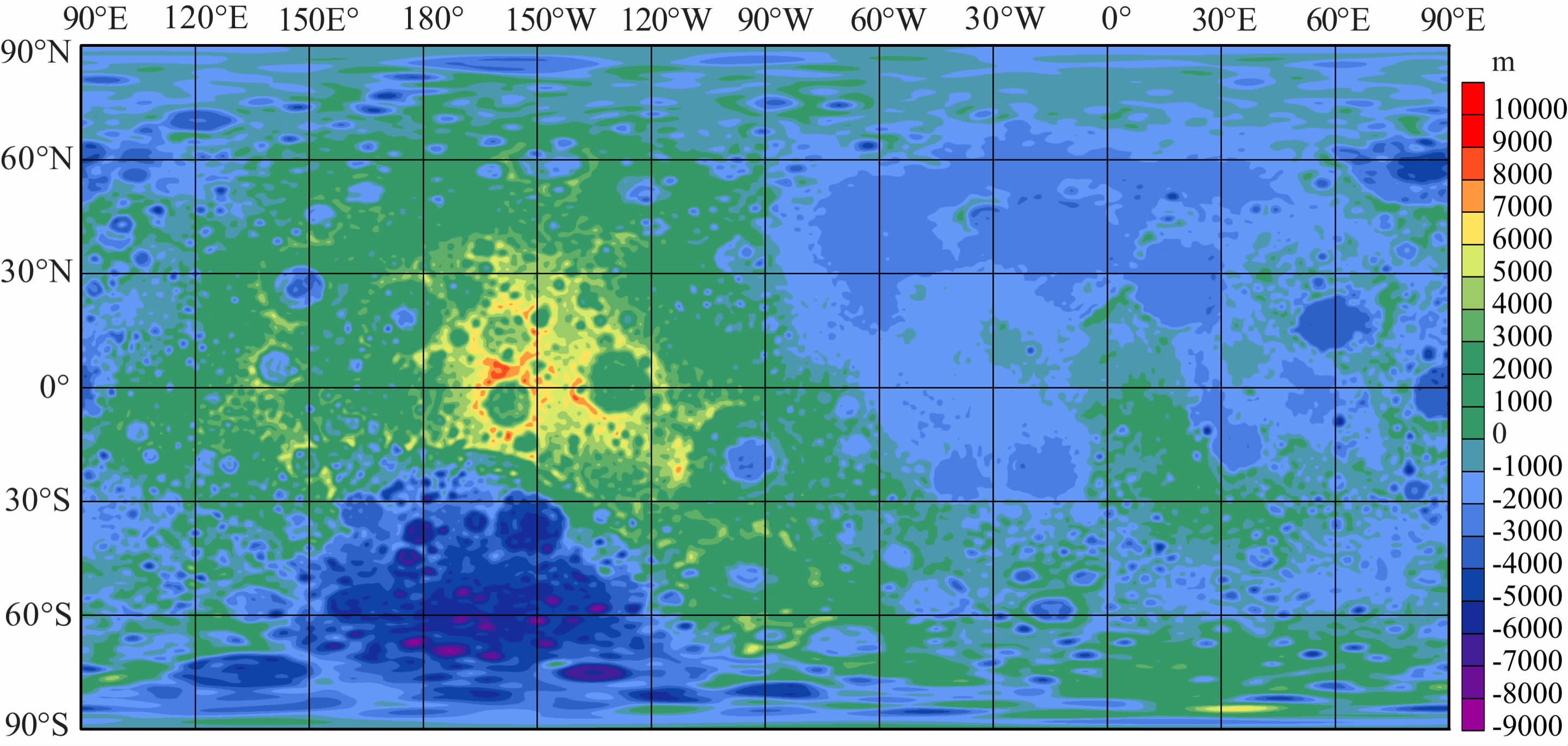 图 12 月球地形图(STM359_grid02_180-180阶次)[21] Fig. 12 Topography of the moon for STM359_grid02_180 (180th) |
