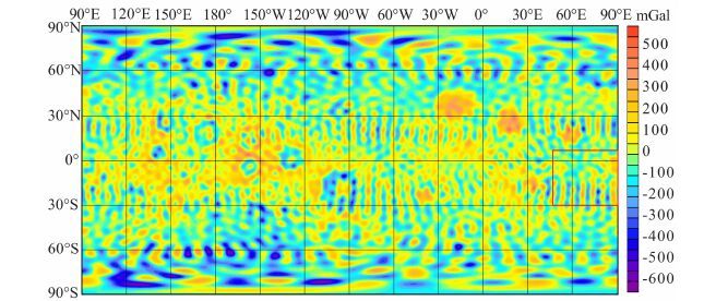图 8 LP165P模型自由空气重力异常图 Fig. 8 A map of free air gravity anomalies for LP165P gravity model |