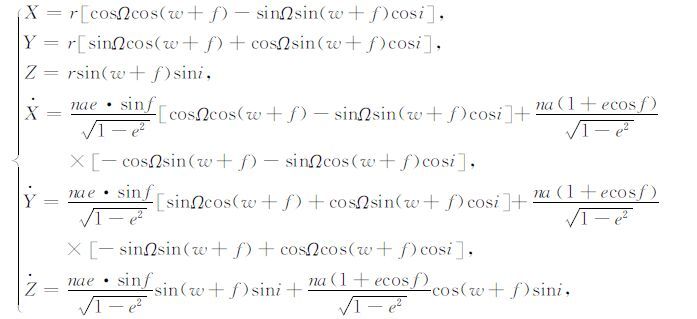 对公式(1)求导就可以建立瞬时情况下卫星轨道根数与卫星位置、速度之间的关系: