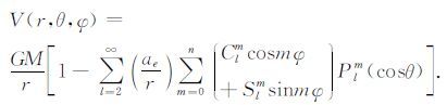 为了能够解算月球行星重力场模型,还需要建立月球位场与卫星的位置和速度之间的关系.此时就需要引入月球重力位场,而月球重力位场可以展开成球谐场的形式,见公式(7):