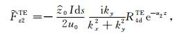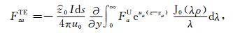 对于可控源海洋电磁测量中的水平电偶极子,有Jms =0,Jes =Idsx,其中Ids和x分别是水平电偶极子的偶极矩和x方向的单位矢量.将方程(1)中的电场和磁场强度分解为横电(TE)和横磁(TM)两种模式,即: