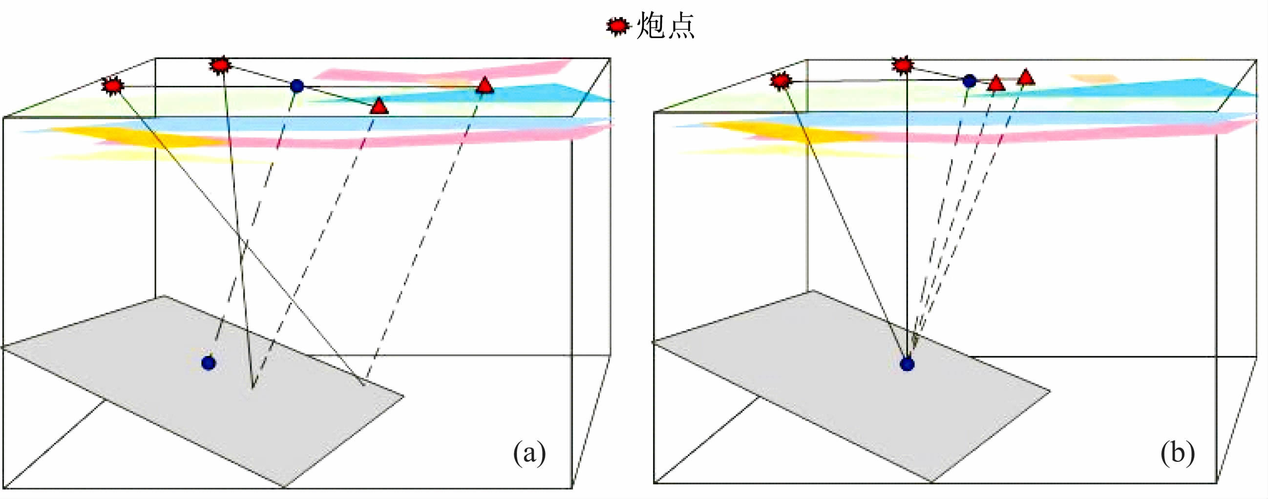 图 4 二维水平界面PS波CMP(a)和CCP(b)传播路径图(纵横波速比较大) Fig. 4 The schematic of the spreading path for PS wave using CMP (a) and CCP (b) methods on two dimensional horizontal interface (greater P-S velocity ratio) |