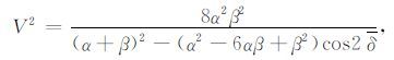 其中V2 =α2/cos2δ,此为传统倾斜界面P波NMO速度[19].当倾角δ=0°时,反射界面为水平界面.由上式可得