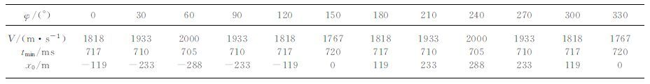 表 1 不同测线方位的V、tmin、x0 Table 1 V、tmin、x0of different azimuth |