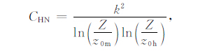 其中Rib是总体理查逊数,CHN是中性条件总体输送系数,与地表粗糙度及热力粗糙度有关.总体理查逊数及中性条件下的总体输送系数可以分别表示为