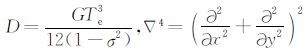 从一般的弹性力学理论可知,在弹性限度范围内,当板块施加上负载L(x,y)后,会产生形变,其形变量w可由下列方程表示: