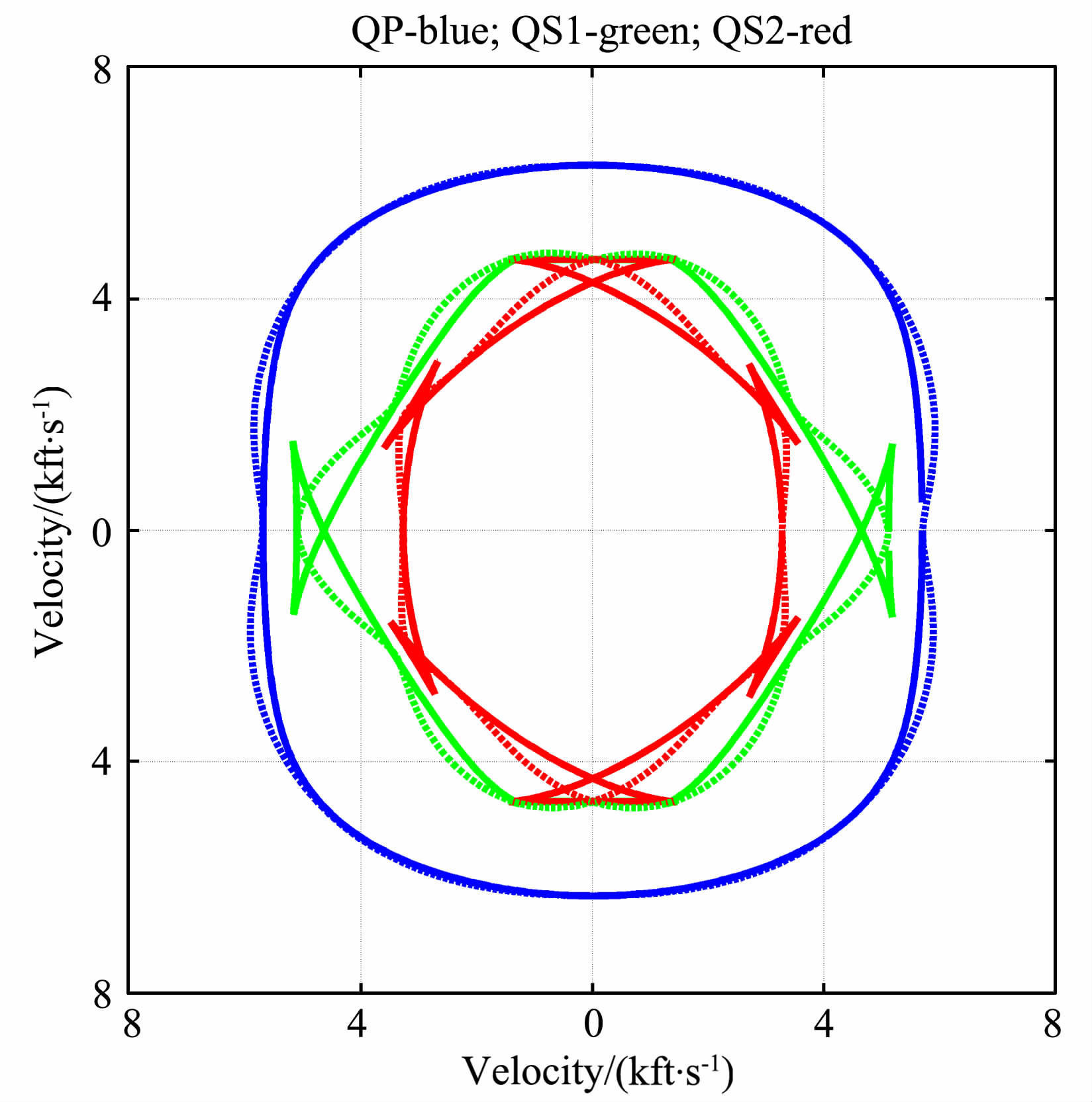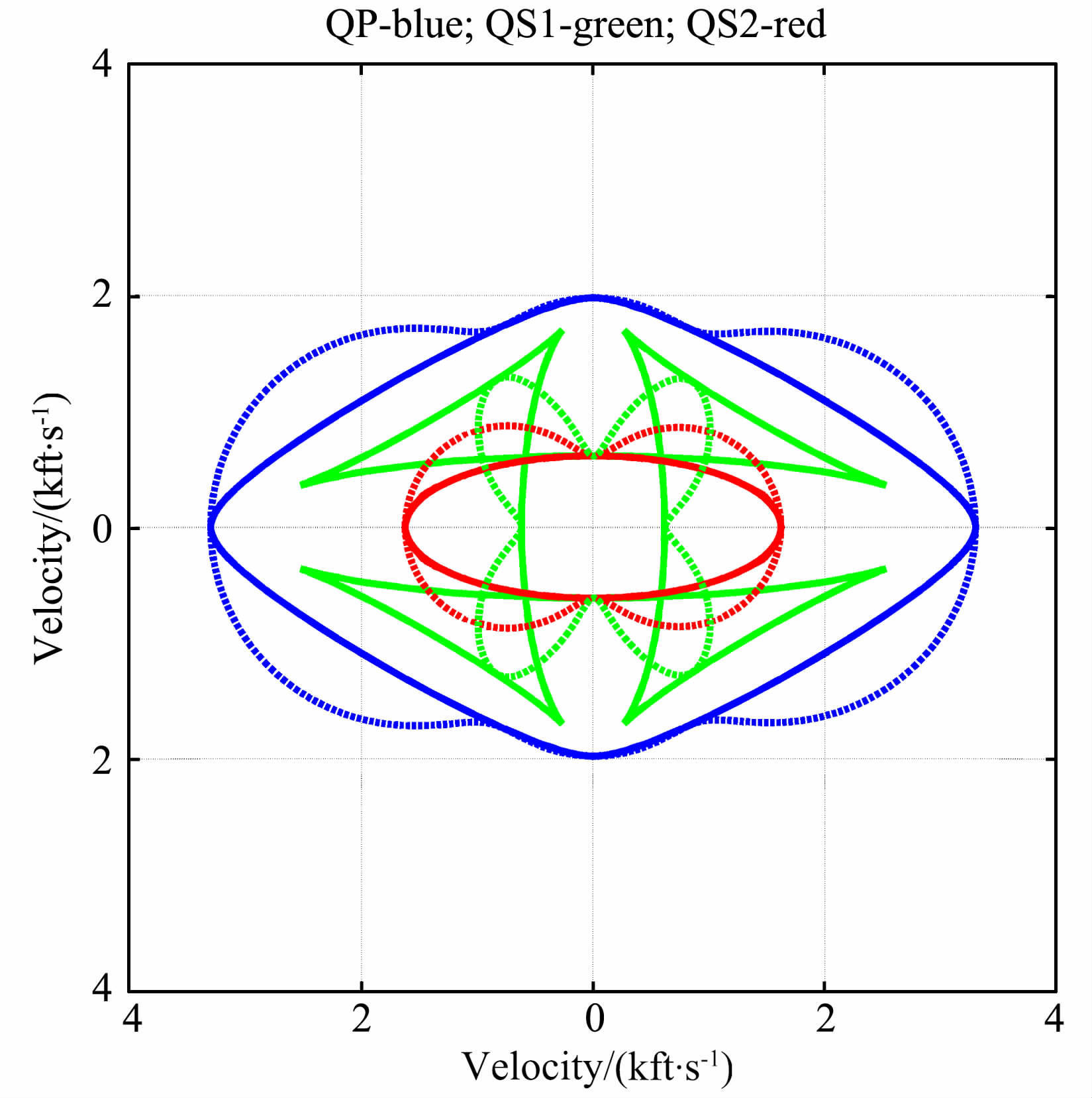 图 2 石英相速度(点线)和群速度(实线)的XZ剖面 Fig. 2 Phase velocity (dotted line) and group velocity (solid line) of quartz in XZ-plane |