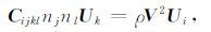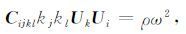 两边同乘Ui,有CijklnjnlUkUi=ρV2Ui2,且Ui2=U12+U22 +U32 =1,则式(2)又写为: