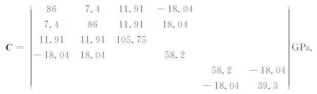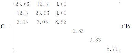 4.1 三方晶系:石英石英的密度ρ=2.65g/cm3,弹性系数矩阵[6, 18]为: