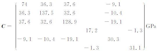 钠长石的密度ρ=2.62g/cm3,弹性系数矩阵[6, 17]为: