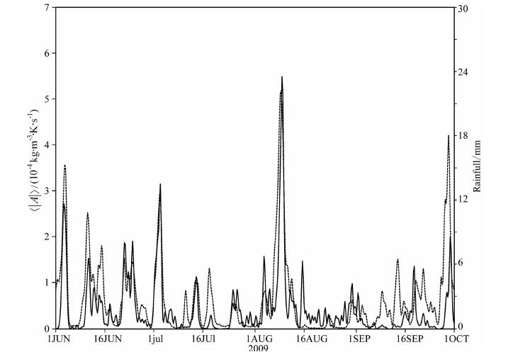 波作用密度因包含凝结潜热函数而与降水有一定关联.如图 10所示,2009年6月1日-10月1日我国福州地区波作用密度