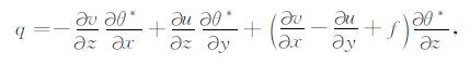 其中,vh=(u,v,0)为水平风速.可见,M代表水平风矢量旋转90°后的旋度在广义位温梯度方向上的投影,而q代表水平风矢量的旋度在广义位温梯度方向上的投影.另外,q体现了相对垂直涡度