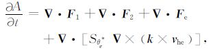 其中,下标“0 ”代表基本态,下标“e”代表扰动态.M0描述大尺度动、热力场的综合特征,Me包含大尺度和中尺度系统的综合信息,A是二阶扰动量,代表扰动能量,表征扰动水平风垂直切变和扰动散度与广义位温扰动梯度的耦合效应,称之为位势散度波作用密度(简称波作用密度).由于本文研究对象是中尺度扰动系统,因此本文重点关注A.