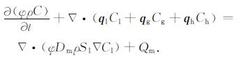 其中M(kg)是混合物的质量, VP(m3)是沉积物的孔隙体积.ρ(kg/m3)和S(m3/m3)分别代表液体溶液(下标l)、游离气体(下标g)和天然气水合物(下标h)的密度和体积分数.下标i指的是原位条件.