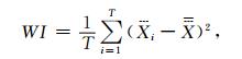 波动活动是大气环流的一种重要形式,为揭示可预报性与波动的关系,定义逐日预报与其月平均值的方差为波动活动指数(WI),计算公式为: