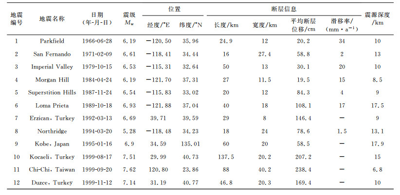 文中对文献[4]和文献[25]中采用的53条近断层长周期地震动进行了分解,这些数据全都来自PEER强地震动数据库(http://peer.berkeley.edu/[2013-01-25]).这些记录都是处于活断层上的浅源地震记录.其中,14条位于岩石场地,震级介于6.1和7.4之间,39条位于土层场地,震级介于6.1和7.6之间.地震与地震动信息分别见表 1和2.由于讨论的主要对象是长周期分量,分解过程中选取的分量频率均小于5 Hz.对于最小分解尺度的确定:经分析,一般经过4尺度的分解就能获得频率小于5 Hz的分量,所以所有地震动都进行了4层以上分解;对于最大分解尺度的确定:如果进行j+1次分解之后,aj+1不再呈现震荡特性,或者aj+1的幅值小于原始地震动幅值的千分之一,或者序列长度受限不能再分解,则“j”即为最大分解尺度.每条地震动按逆序依次获取a′4,a′5,…,a′j-1,aj,共(j-3)个分量.通过这种分解方式共获取了266条地震动分量.由分解结果可知,地震动平均分解次数约为5次,即将一条地震动分解成5个较为简单的地震动分量,为后文的理论分析提供了数据基础.