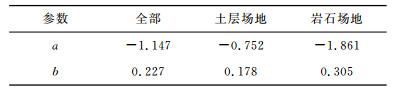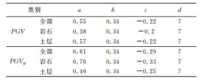 表 4 PGVp和PGV回归分析参数表 Table 4 Parameters from the regression analyses of PGVp and PGV |