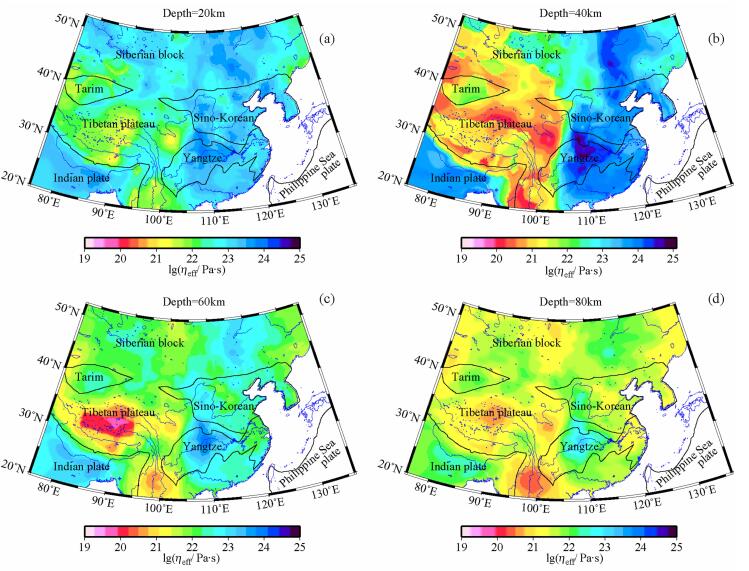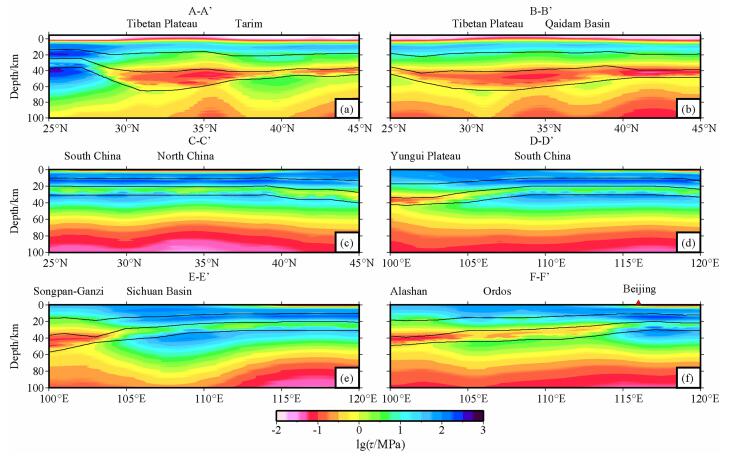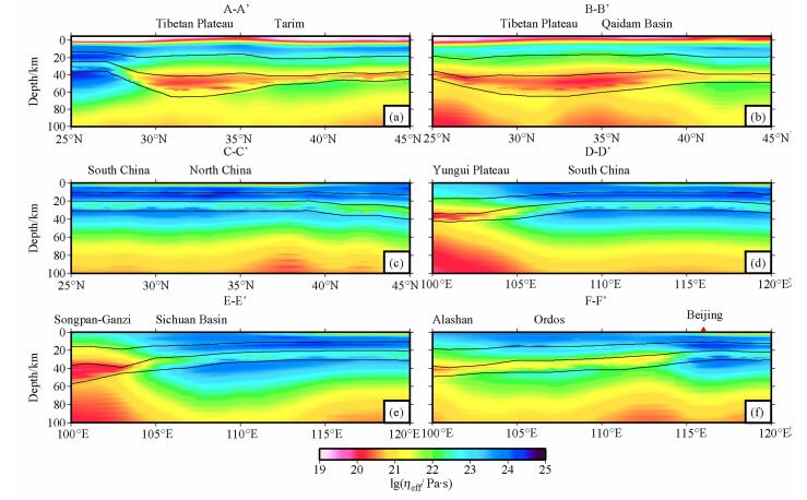 Key words: Chinese continent and adjacent regions      Lithosphere      Rheological structure      Effective viscosity