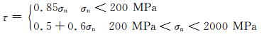 基于大量实验数据,拜尔利得出岩石在沿着破裂面滑动过程中,剪应力τ和正应力σn近似为线性关系,即拜尔利定律[17]