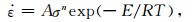 是应变率,σ=σ1 -σ3为差应力,R=8.31 J· mol-1·K-1为普适气体常数,T为绝对温度,AnE为岩石物性参数.可以将(4)式重写为应力的表达式:
