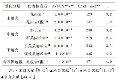 表 2 模型计算中采用的岩石圈各层流变参数 Table 2 Rheological parameters used in the model for each layer in the lithosphere