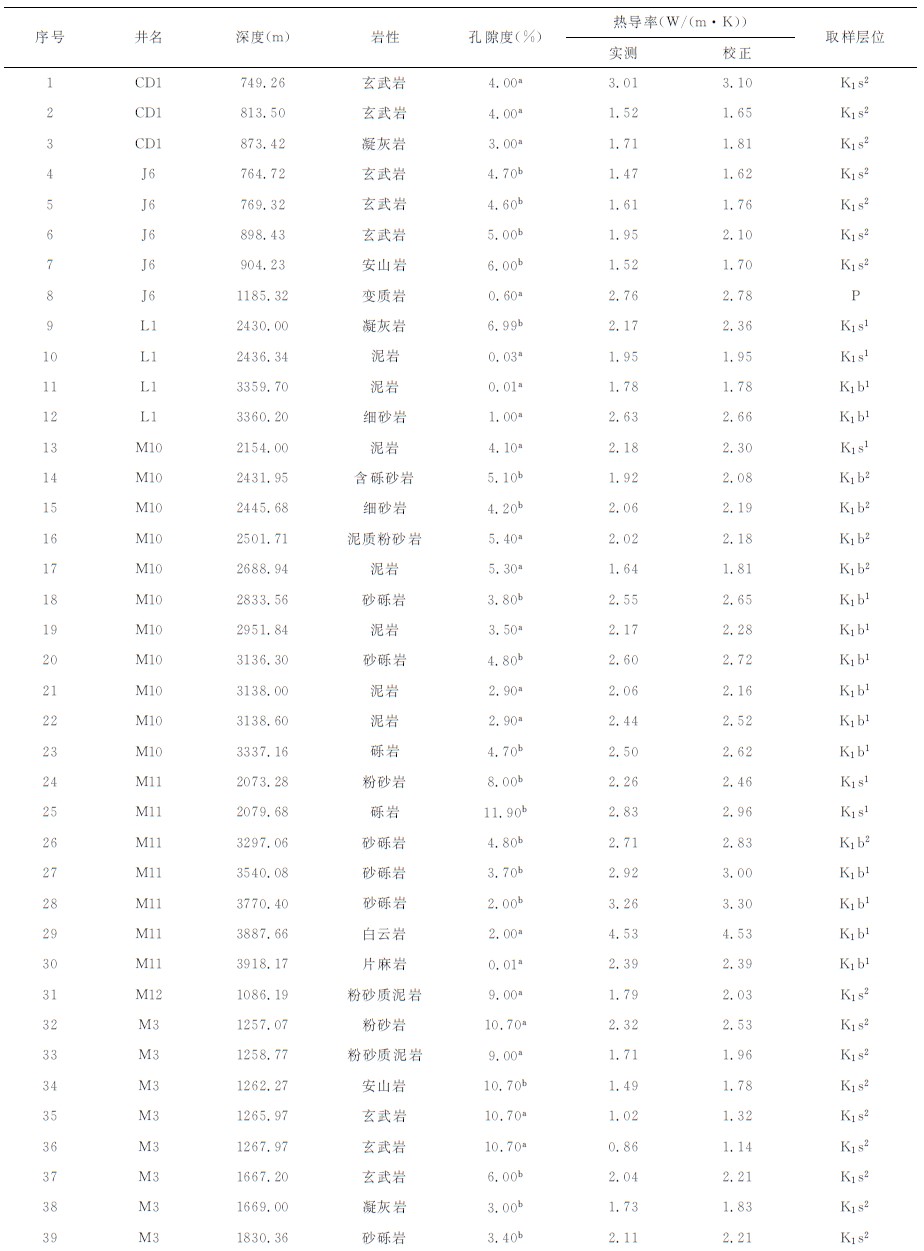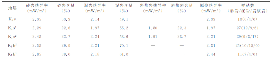 表 1 查干凹陷岩石热导率 Table 1 Thermal conductivity data in the Qagan sag |