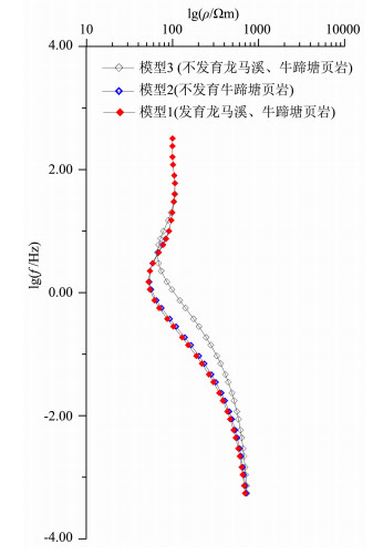 图 2 研究区不同地电模型的一维模拟结果 Fig. 2 The simulations of different geoelectric models (1D) at the TFEM exploration area |