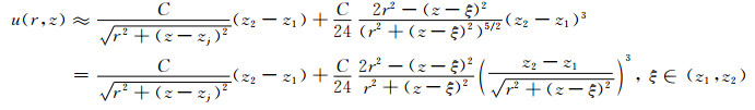 地层介质通常具有旋转对称性,阵列侧向测井仪器也具有轴对称,对称轴通过电极中心线;且有时介质和电极系还具有对z=0平面的反射对称性.以对称轴为z轴,电极中心为坐标原点,建立如图 2所示柱坐标系.对包含井眼、侵入带、围岩和原始地层的轴对称模型,在柱坐标系(r,z)中,电位函数u(r,z)满足如下偏微分方程边值问题[4, 18-19]: