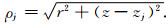 其中ρ0为点(r,θ,z)到点(r0,θ0,z0)的距离,即