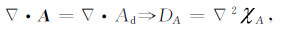 则加速度迁移项的流函数ψA及加速度迁移项位势χA与其旋转部分的垂直分量和散度分量之间有如下关系: