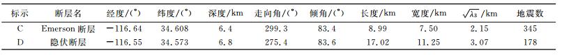 表 1 由本文方法确定的Landers余震序列拟合平面参数及其与在同一区域已知断层的对应 Table 1 Correspondence between fitting planes parameters of the Landers aftershock sequences obtained by this method and kno、vn faults in the same area |
