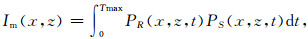 逆时偏移成像条件方面,Claerbout(1971)提出上、下行波相关成像条件.但逆时偏移成像是用双程波方程逆时外推波场与沿正时间方向外推的震源波场在空间任何一点进行零延迟的互相关.从传播路径看,这两个波场从炮点到反射点,再到检波点的整个路径上都是相关的.因此,逆时偏移产生很强的低频噪音. Mulder[21](2003)提出对成像结果高通滤波可以消除假象;Yoon,et al.(2004)提出通过对成像条件引入与角度有关的震源与检波点波场的信息来挑出合适成像结果,进而去除假象[22];Fletcher,et al.(2005)把特定区域引入方向阻尼,来压制假象[23];Liu,et al(2007a)提出波场分解的成像条件[24-26].本文应用Claerbout的互相关成像原理,然后用Laplace滤波消除低频假象[27].互相关成像条件的成像公式表示为