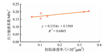 从式中可以很清晰地得知:a值越大,表明煤样渗透率随着应力的变化就越敏感,在应力相同变化幅度下,煤样渗透率变化值越大;反之,a值越小,表明煤样渗透率随着应力的变化敏感性越差,煤样渗透率随应力变化梯度就越小.