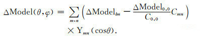 上面我们给出了水循环的三个主要组成成分及采用的数据模型.但是,任何一个单独的部分并没有考虑海洋与陆地或大气之间的水质量交换,因此总体质量未保持平衡.这里我们假设任何一个组成部分的总体水质量缺失将由海洋补偿,如(11)式中右边括号中第二项,其中Cmn为盆地函数的m阶n次球谐展开系数,