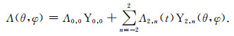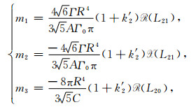 Λ2, -m=(-1)mΛ2, m*,表示复数的共轭,i为-1的虚方根.只考虑弹性地球影响,忽略黏弹性作用,极移分量m1和m2与质量负荷球谐展开系数之间的关系式为: