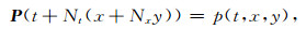 其中, σ(t, x, y)表示采样点(t, x, y)在拉平前后的位置偏移量, 它和相对地质时间τ均是输入数据垂向坐标t的函数.