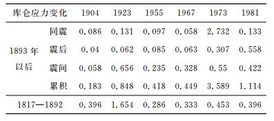 表 4 鲜水河断裂带1893年以后同震、震后、震间效应在强震破裂中心产生的库仑应力变化量(单位:MPa) Table 4 Coulomb stress changes caused by the effects of co-seismic, post-seismic and inter seismic at the strong earthquake rupture center on the Xianshuihe fault zone since 1893(Unit:MPa) |