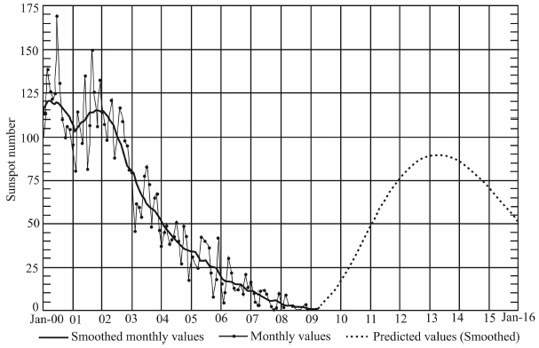 图 10 太阳活动周期表(http://www.swpc.noaa.gov/SolarCycle/SC24/index.html) Fig. 10 The table of solar activity cycle |