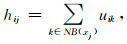 其中NB(xj)指以xj为中心的邻域,本文中采用3×3窗.跟隶属度函数一样,空间函数hij也表示像素xj属于第i个聚类的概率.如果某一像素邻域里的像素都属于同一个聚类中心,这个像素隶属于这一聚类中心的空间函数值就很大.空间函数嵌入到隶属度函数的方式如下: