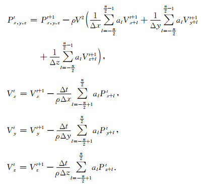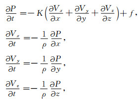 2 记录波场边界信息的吸收边界方法和随机边界方法 2.1 吸收边界方法本文采用的是交错网格求解声波方程[21-23],三维情况下,公式如下所示: