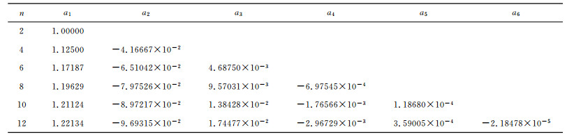 其中al是差分系数,a0=0,al=-a-l.当n=2时,a1=1.0.当n=4时,a1=1.125,a2=-0.041666667.当n>4时,