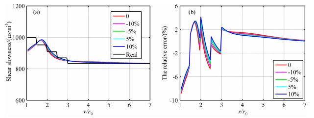 改变r ′值就可得到井外地层横波慢度的径向分布,它与地层横波慢度真实值之间相对误差为: