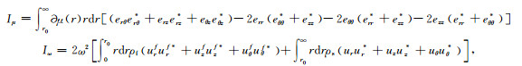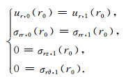 在井壁r0处,其界面的内侧是液体,外侧是固体,此时边界条件变成法向位移ur和法向应力σrr连续,切向应力σrz和σrθ为零,切向位移分量uθ和uz无需考虑,即