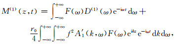 层与层之间的声场由汤姆森-哈斯克(Thomson-Hanskell)传播矩阵[17]来连接,反复利用各层介质的传递矩阵和边界条件,就可以得求的径向分层地层的声场.对于偶极声源,测量的是径向位移,是瞬态声场,需要考虑声源的影响,其在空间-时间域的具体表达式为[16]