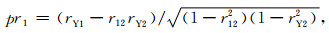 本文使用的方法包括线性相关、偏相关、合成分析等.偏相关分析可以在多变量情况下除去其它变量的影响,而只计算两个变量之间的线性相关系数.考虑到印度洋和太平洋海温变化的相互联系,参考Behera和Yamagata[31]的分析,本文使用偏相关分析方法分别计算IOBMI和Niño3指数与夏季850hPa矢量风的偏相关分布,分别探讨印度洋海温和赤道东太平洋海温对夏季西北太平洋环流异常的影响.偏相关分析表达式可写成: