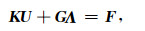 其中, K和F分别是系统的总体刚度矩阵和总体等效节点载荷矢量, G是系数矩阵U和A是待求的总体位移矢量和接触面上的接触力矢量.由于未知量的个数大于方程个数, 因此需要附加断层法向位移变化的约束条件