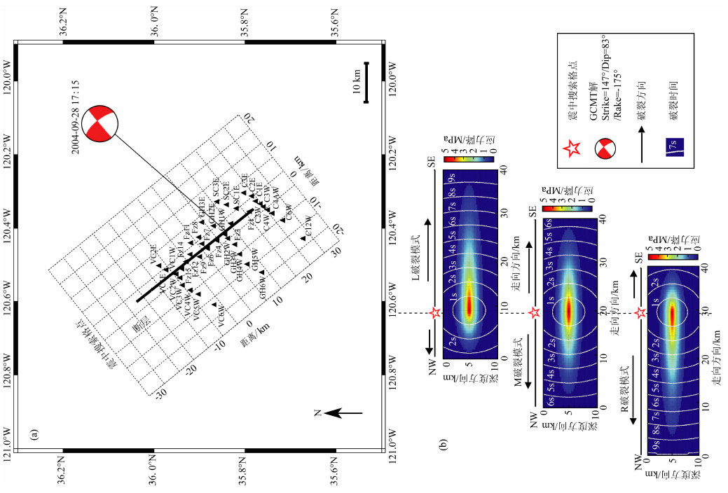 本研究的理论地震图计算以San Andreas断层为界采用不同的一维地下速度结构模型(表 5),即已用于Parkfield地震震源破裂过程反演[19, 21]的速度模型.