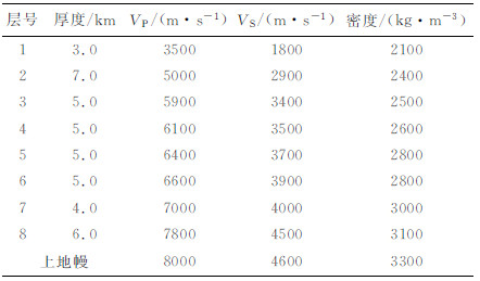 表 2 数值检测使用的一维速度结构模型 Table 2 1-D structure used in this numerical test |